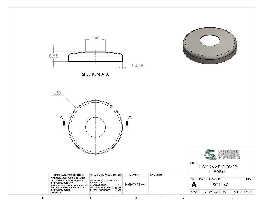 #SCF166 - STEEL 1 1/4" PIPE SNAP COVER FLANGE