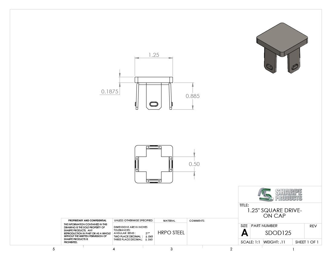 #SDOD125 - STEEL 1-1/4" SQ. TUBE DRIVE-ON CAP