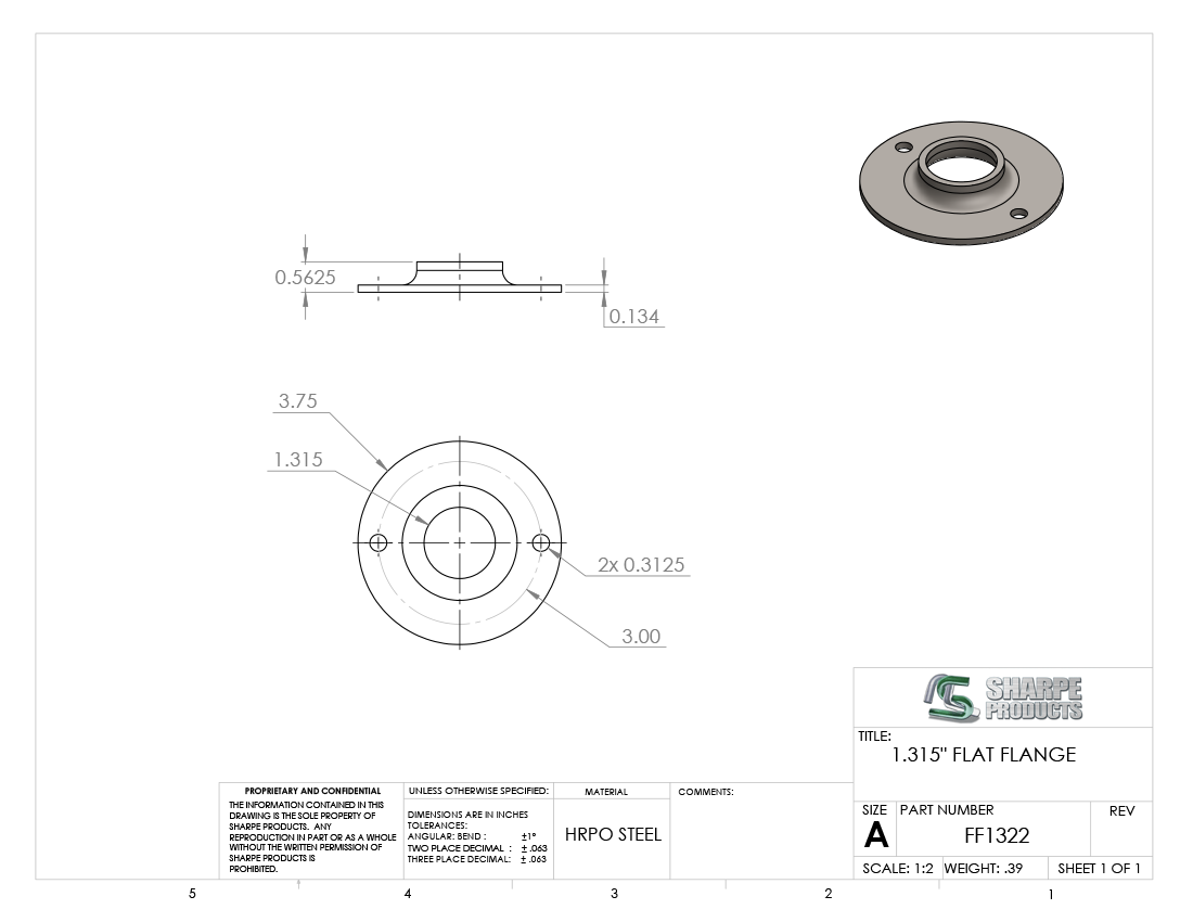 FLAT FLANGE, 1 PIPE (1.315 O.D.) W/ (2) HOLES, STEEL