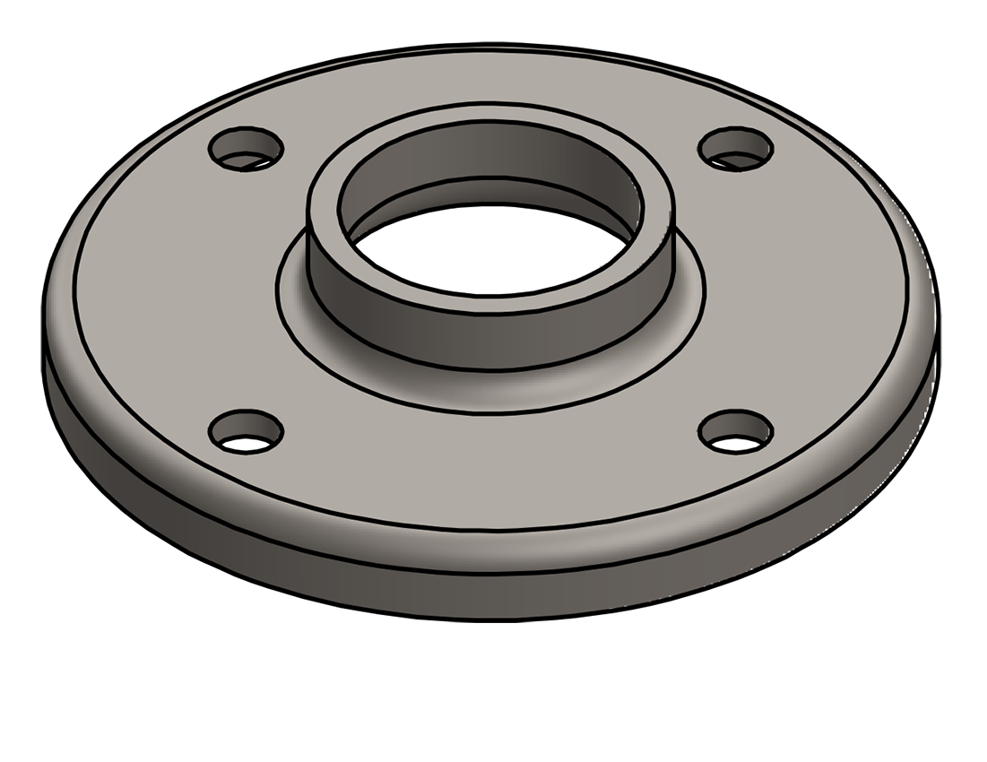 RAISED FLANGE, 1 PIPE (1.32 OD) W/ (4) HOLES, STEEL