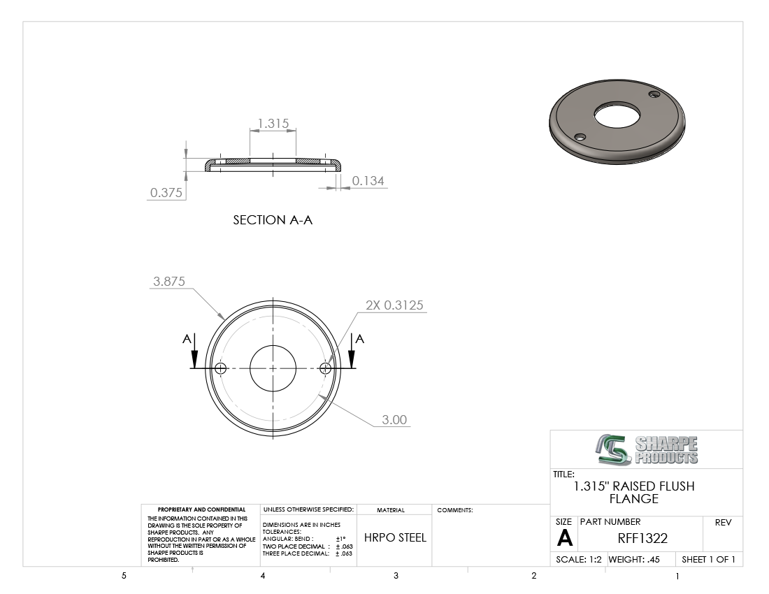 RAISED FLUSH FLANGE, 1 PIPE PIPE (1.315 O.D.) W/ (2) HOLES, STEEL
