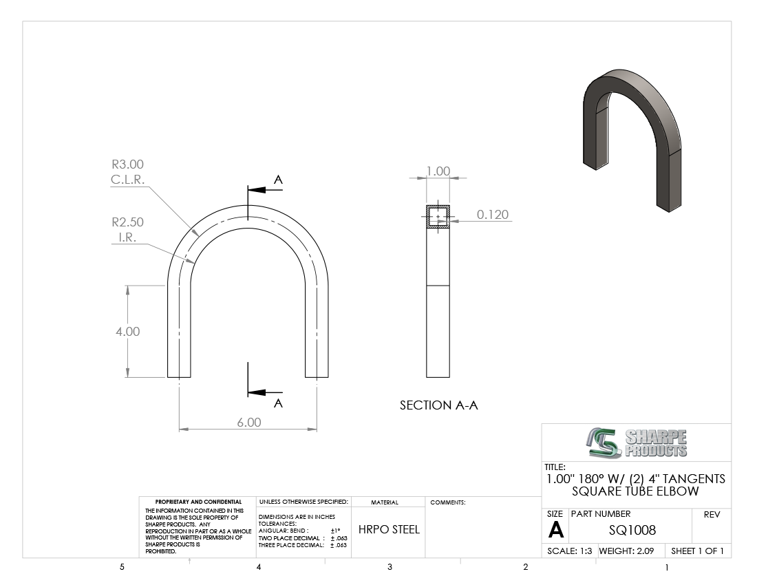Pipe Size or Tube Size (A)1" SQ. TUBE