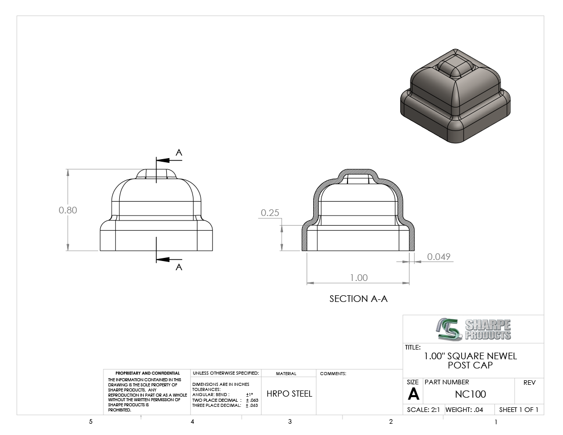#NC100 - STEEL 1" SQ. TUBE NEWEL CAP