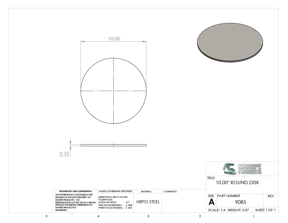 DISK STEEL, 10 DIA. X 1/4 THIICK