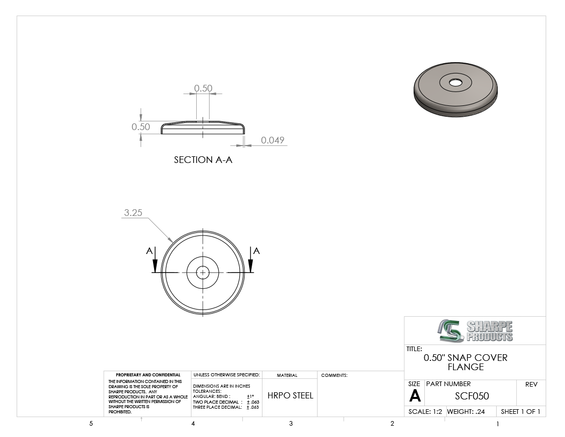 #SCF050 - STEEL 1/2" TUBE SNAP COVER FLANGE