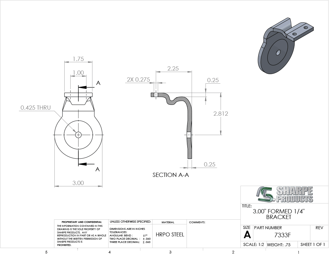 BRACKET STEEL, 1/4 THICK X C.L. W/ (3) HOLES & FLAT SADDLE
