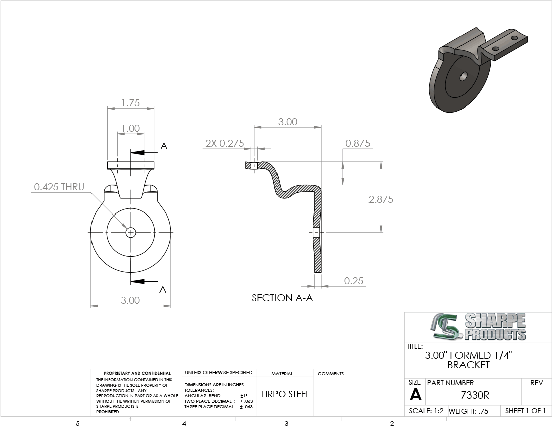 #7330R - STEEL 1/4" FORMED BRACKET, 3" C.L., ROUND SADDLE