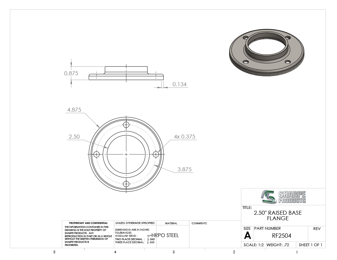 RAISED FLANGE, 2 1/2 O.D. W/ 4 HOLES, STEEL