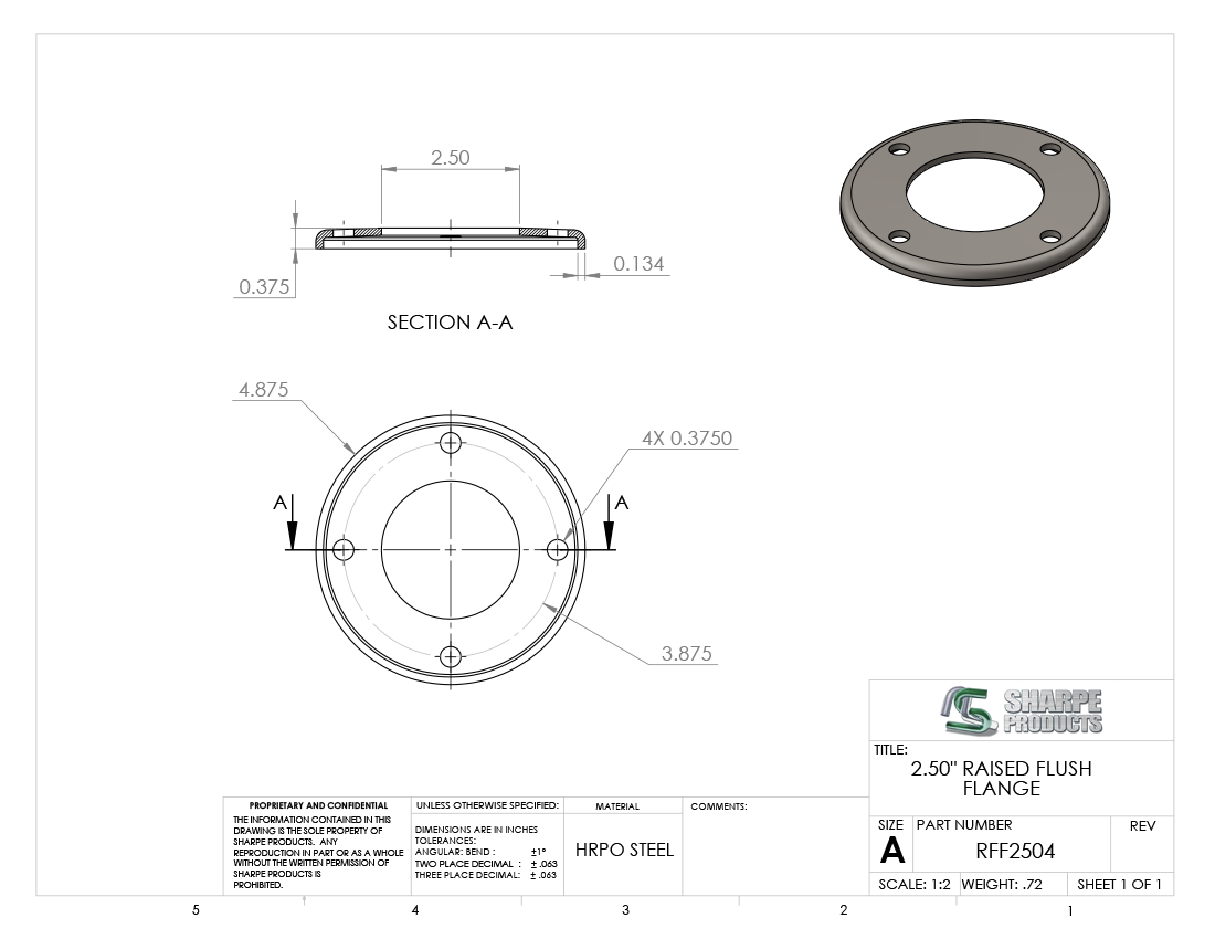 RAISED FLUSH FLANGE, 2 1/2 O.D. W/ (4) HOLES, STEEL