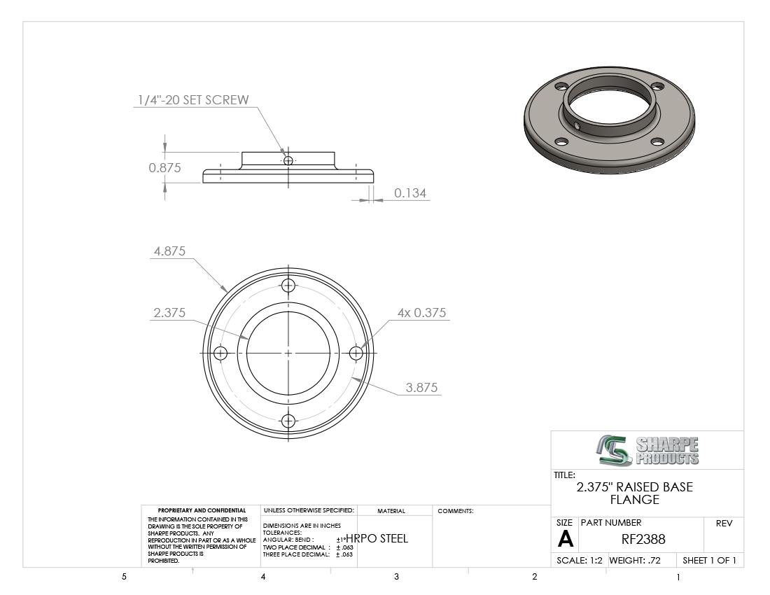 RAISED FLANGE, 2 PIPE (2.375 O.D.) W/(4) HOLES & SET SCREW, STEEL