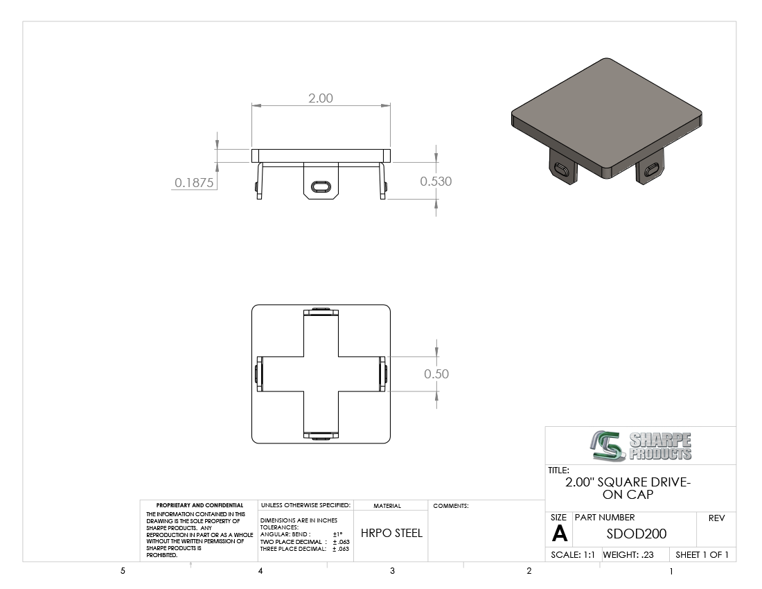 #SDOD200 - STEEL 2" SQ. TUBE DRIVE-ON CAP