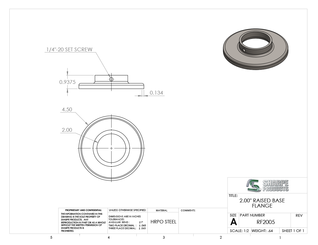 RAISED FLANGE, 2 O.D. W/ SET SCREW, STEEL