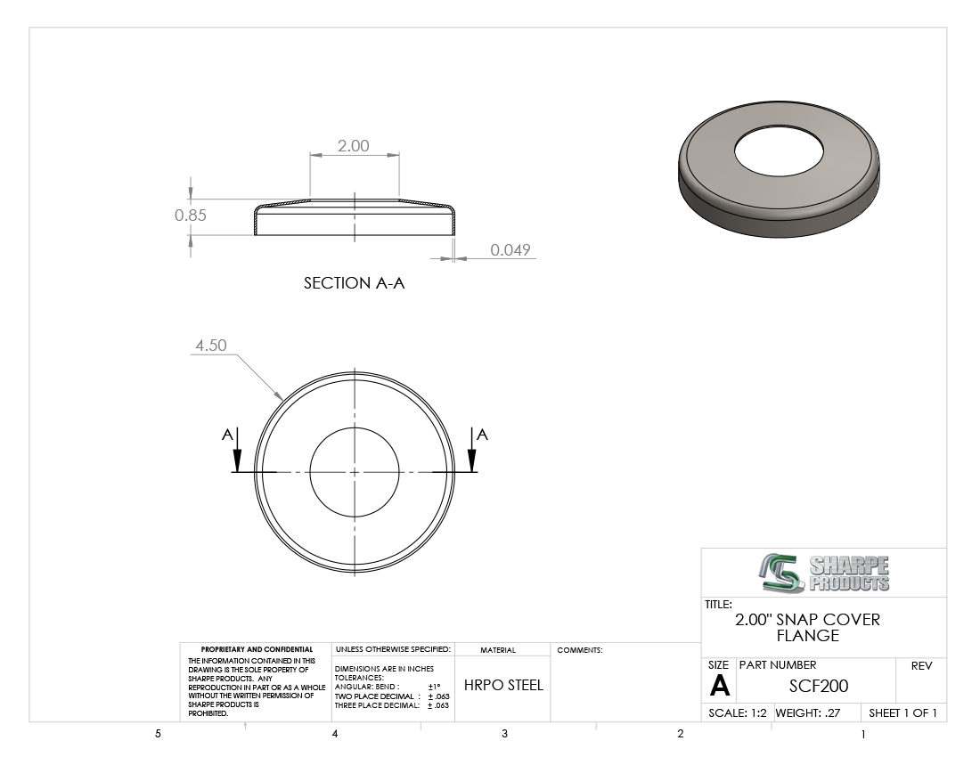 #SCF200 - STEEL 2" TUBE SNAP COVER FLANGE