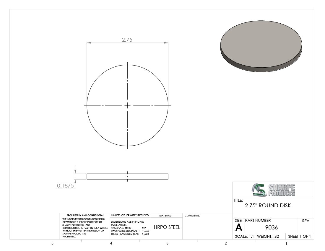 DISK STEEL, 2 3/4 DIA. X 3/16 THICK