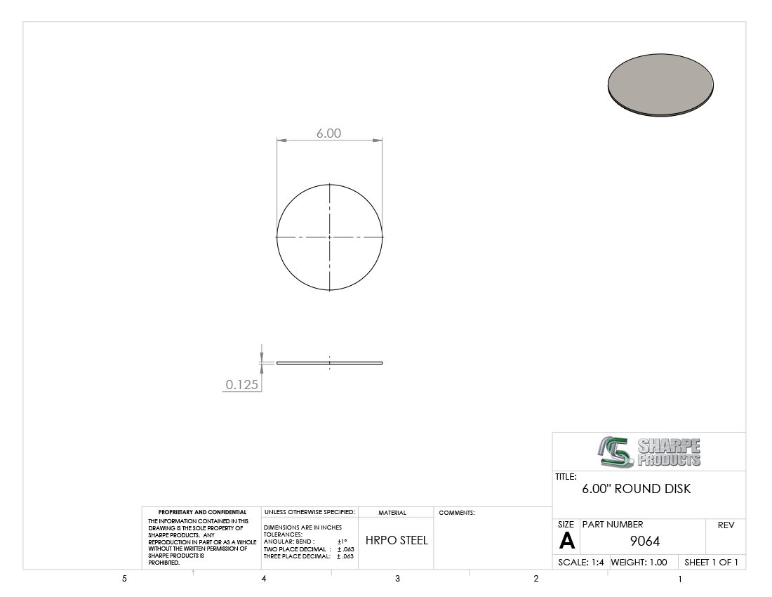 DISK STEEL, 6 DIA. X 1/8 THICK