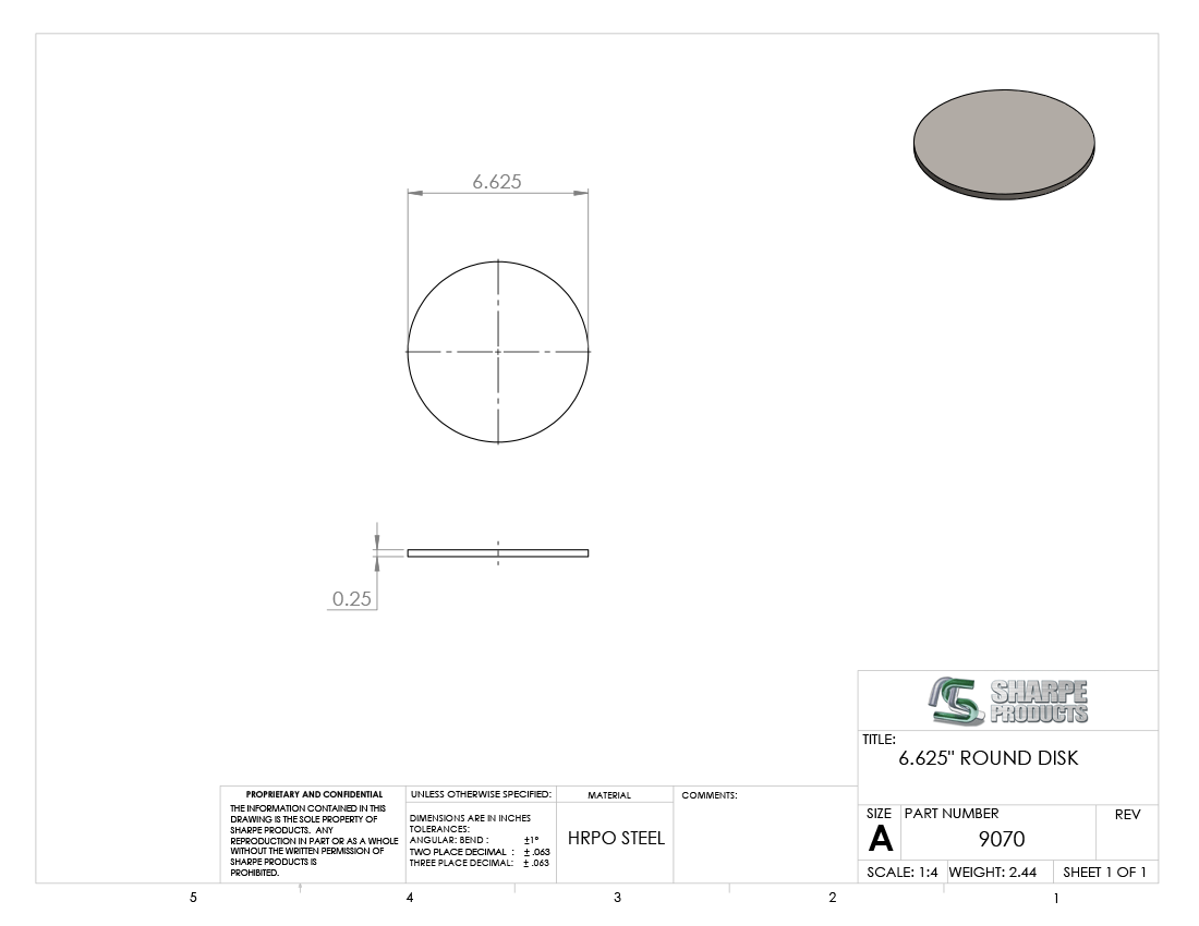 DISK STEEL, 6 5/8 DIA. X 1/4 THICK