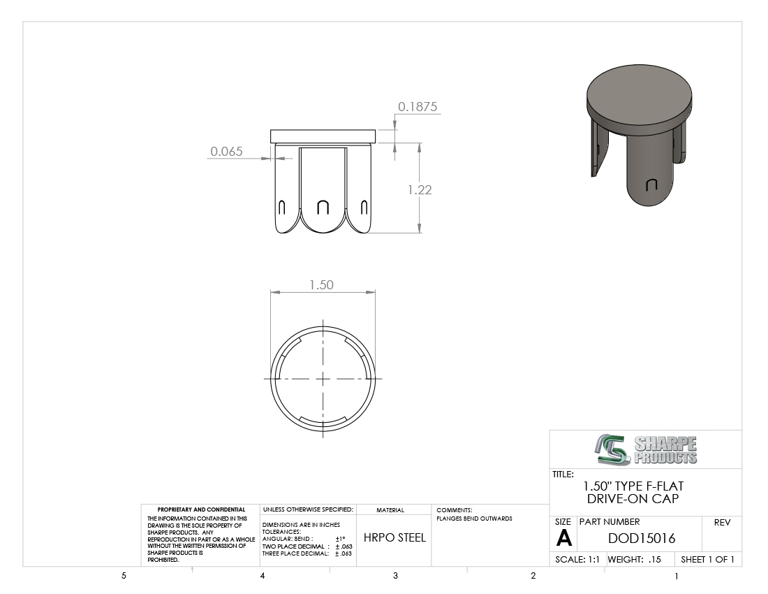 #DOD15016 - STEEL FLAT DRIVE-ON CAP 1 1/2" TUBE 16 Ga.