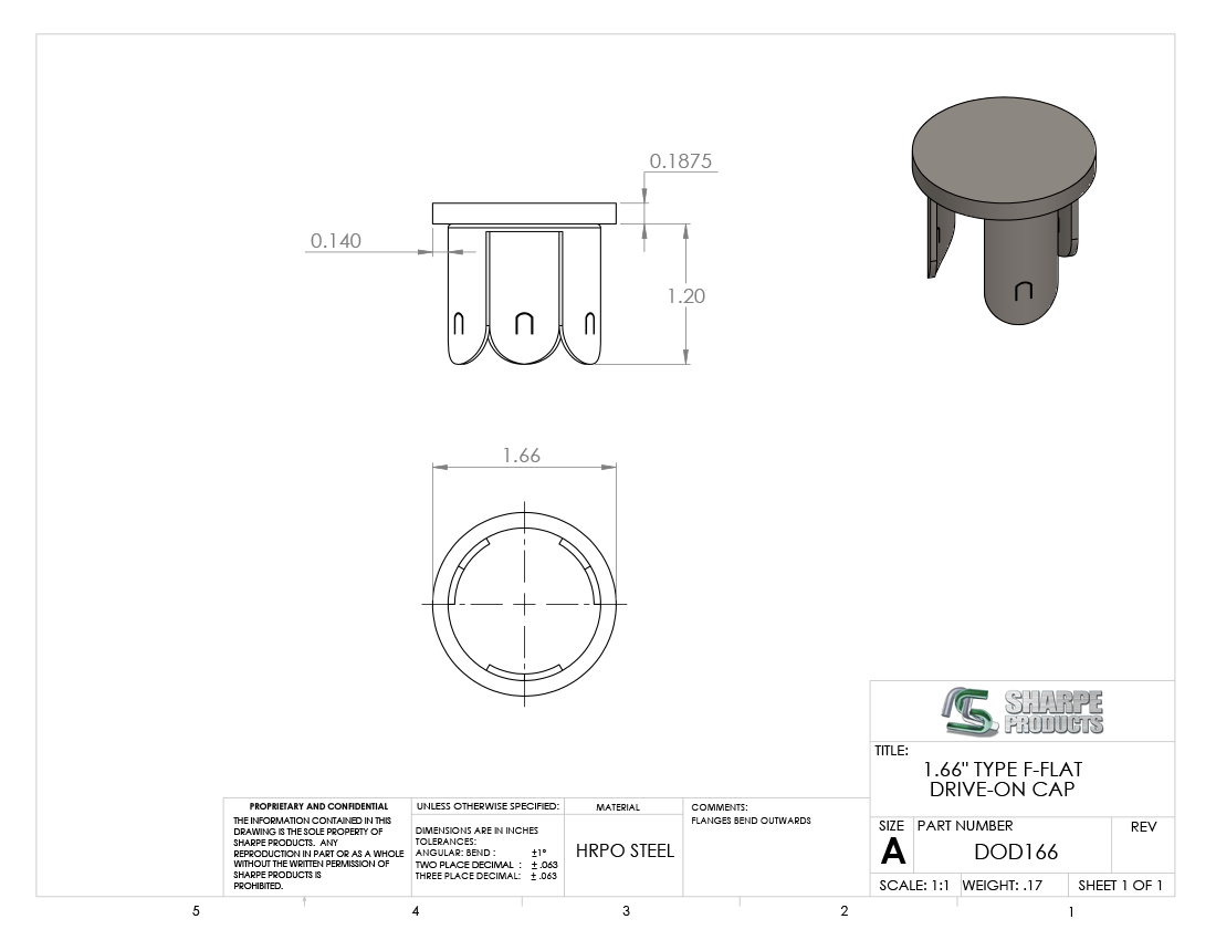 #DOD166 - STEEL FLAT DRIVE-ON CAP 1 1/4" PIPE SCH 40