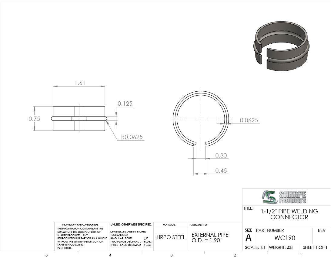 #WC190 - STEEL WELD CONNECTOR, 1 1/2" PIPE SCH 40
